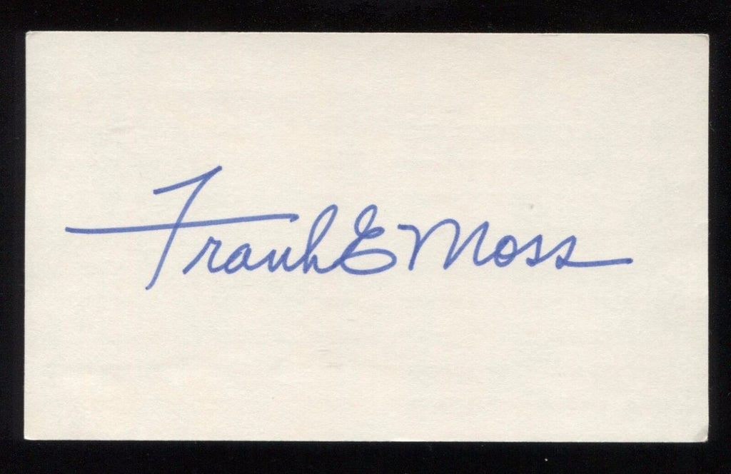 Up for sale is a 3x5 index card signed by Frank Moss. Boldly signed in blue ink pen on the index card, this will be a great example to matte and frame with a vintage photo. Autograph was obtained circa the 1970's by an autograph collector whose collection I purchased in it's entirety.