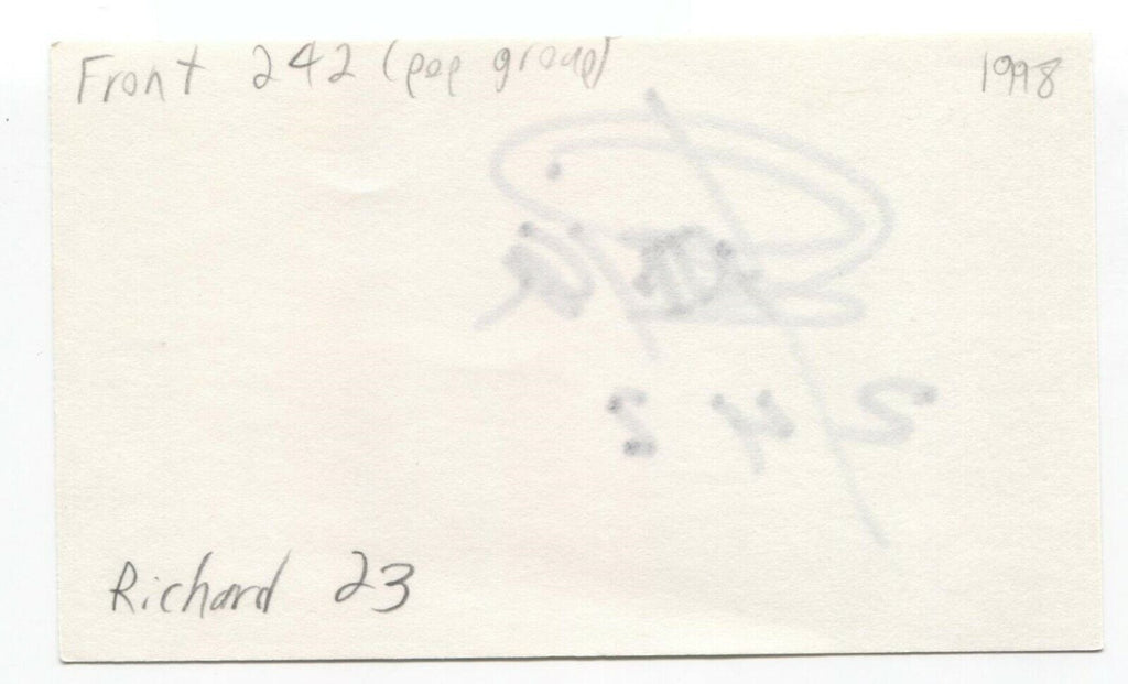 Up for sale is an autographed 3x5 index card, boldly signed by Richard23, of Front 242 Autograph was part of an enormous collection of over 9000 in person collected signatures.