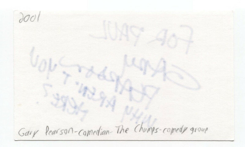 Up for sale is an autographed 3x5 index card, boldly signed comedian Gary Pearson.