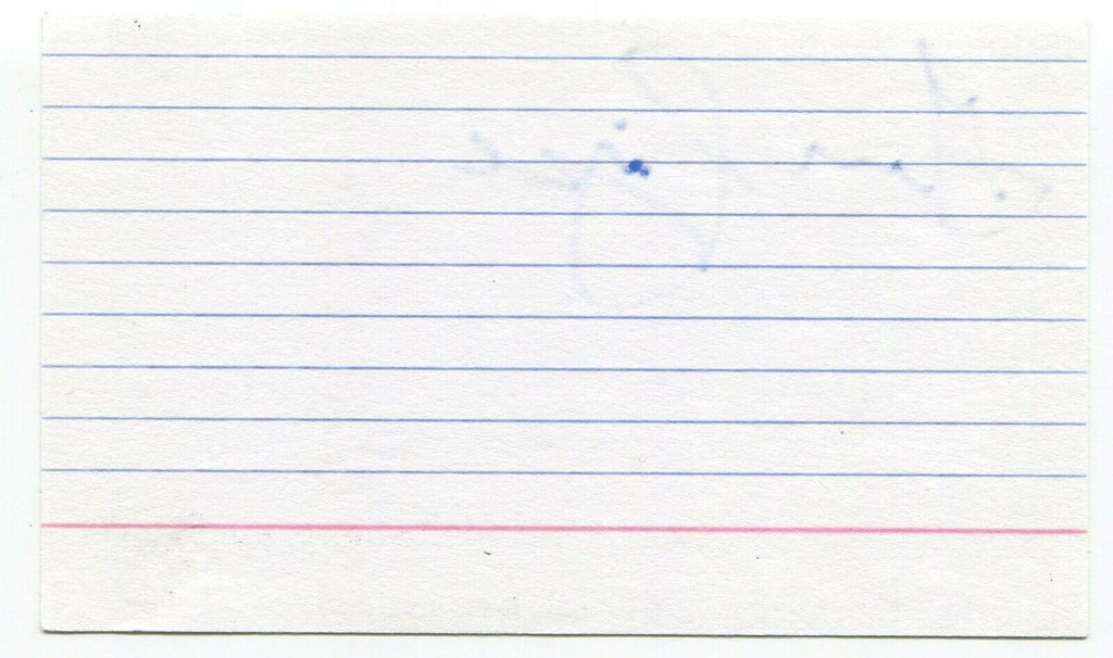Up for sale is an autographed 3x5 index card, boldly signed by sports reporter Gene Principe.  Autograph was part of an enormous collection of over 9000 in person collected signatures that I was fortunate to purchase in it's entirety, that belonged to the great Glenn Marshall.