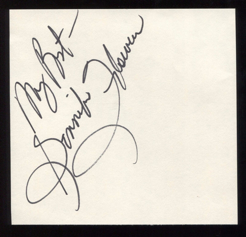 Up for sale is a vintage signed book page, boldly autographed by Gennifer. Beautifully signed in pen, this would be a great example for your collection, and would fit well as a cut autograph to be matted and framed with a vintage photograph. Please note that this item is a signed page that was removed from a book by the previous owner and trimmed to an autograph cut. Autograph was part of a single owner collection of over 300 autographs that I was fortunate enough to purchase in it's entirety.