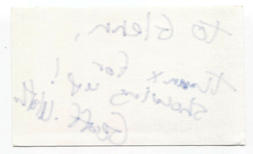 Up for sale is an autographed 3x5 index card, boldly signed by Geoffrey Uloth. Autograph was part of an enormous collection of over 9000 in person collected signatures.