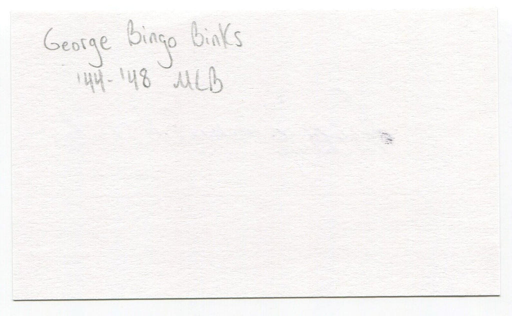 George "Bingo" Binks Signed 3x5 Index Card Autographed Washington Senators MLB