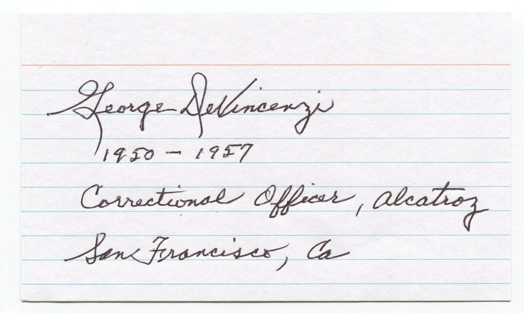 George Devincenzi Signed 3x5 inch Index Card Autographed Alcatraz Guard