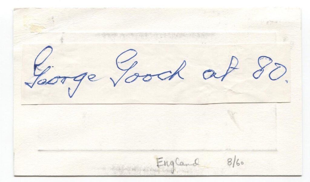 Up for sale is a signed card, boldly autographed by George Gooch. Autograph was part of the well known single owner, original "Roger Harris" collection of thousands of autographs, acquired over many decades of collecting.