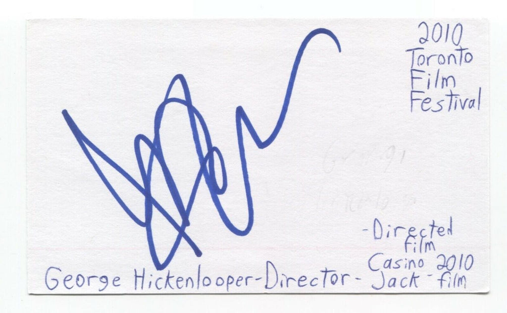 Up for sale is an autographed 3x5 index card, boldly signed by George Hickenlooper. Autograph was part of an enormous collection of over 9000 in person collected signatures.