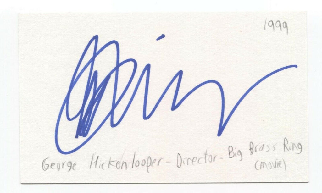 Up for sale is an autographed 3x5 index card, boldly signed by George Hickenlooper. Autograph was part of an enormous collection of over 9000 in person collected signatures.