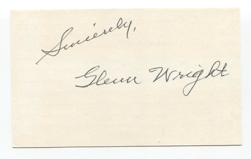Up for sale is an autographed index card, boldly signed by Glenn Wright.  Autograph was part of a large collection of cut autographs and index cards, over 200 baseball signatures that I was fortunate to purchase in it's entirety.