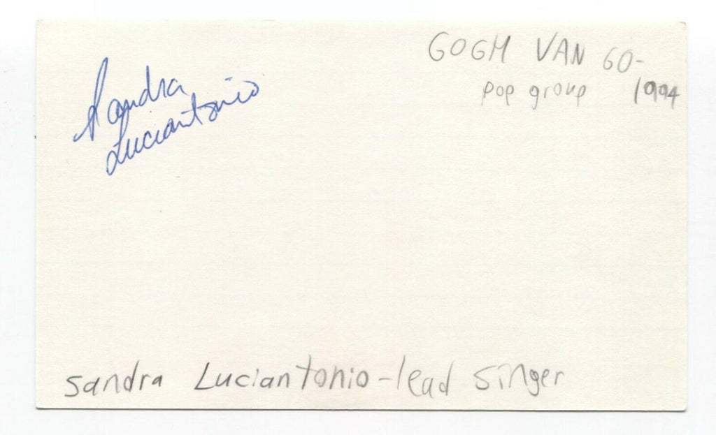 Up for sale is an autographed 3x5 index card, boldly signed by Sandra Luciantonio, of the band Gogh Van Go.  This autograph was part of an enormous collection of over 9000 in person collected signatures.