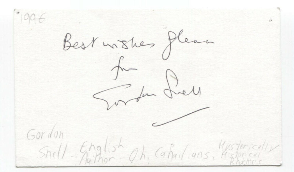 Gordon Snell Signed 3x5 Index Card Autographed Signature Author Writer