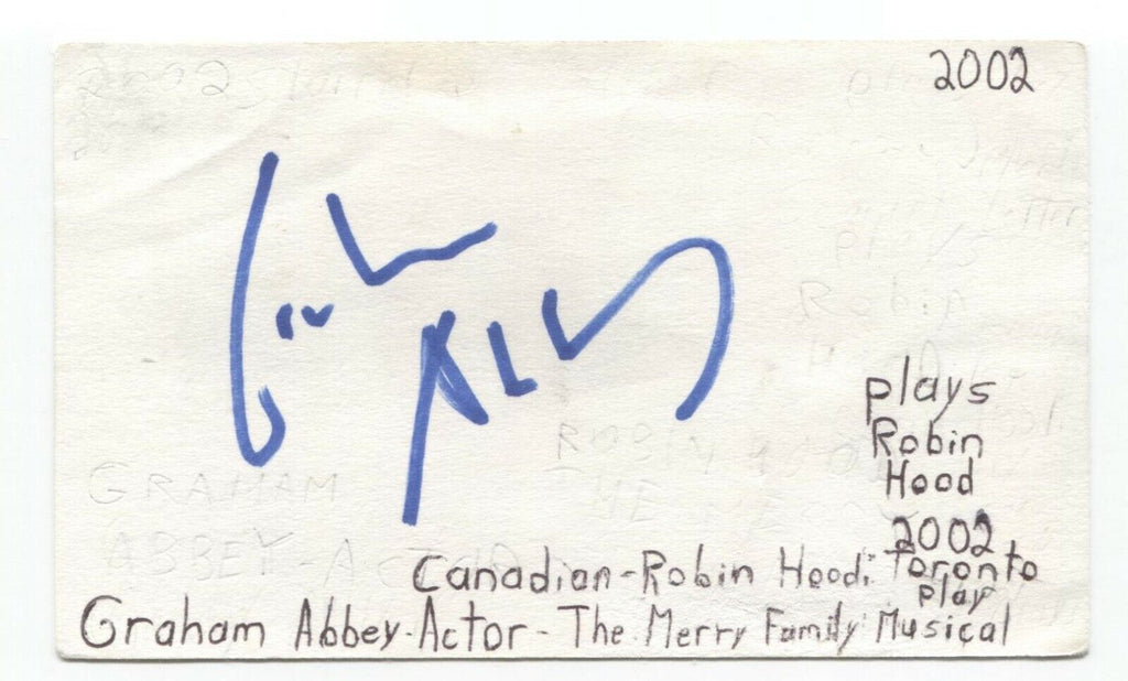 Up for sale is an autographed 3x5 index card, boldly signed by actor Graham Abbey. This autograph was part of an enormous collection of over 9000 in person collected signatures.