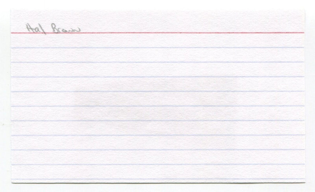 Up for sale is an autographed cut adhered to a 3x5 index card, signed by baseball Hal Brown. Just a great looking autograph that will display nicely. Autograph was part of the JP collection consisting of over 350 autographed index cards.