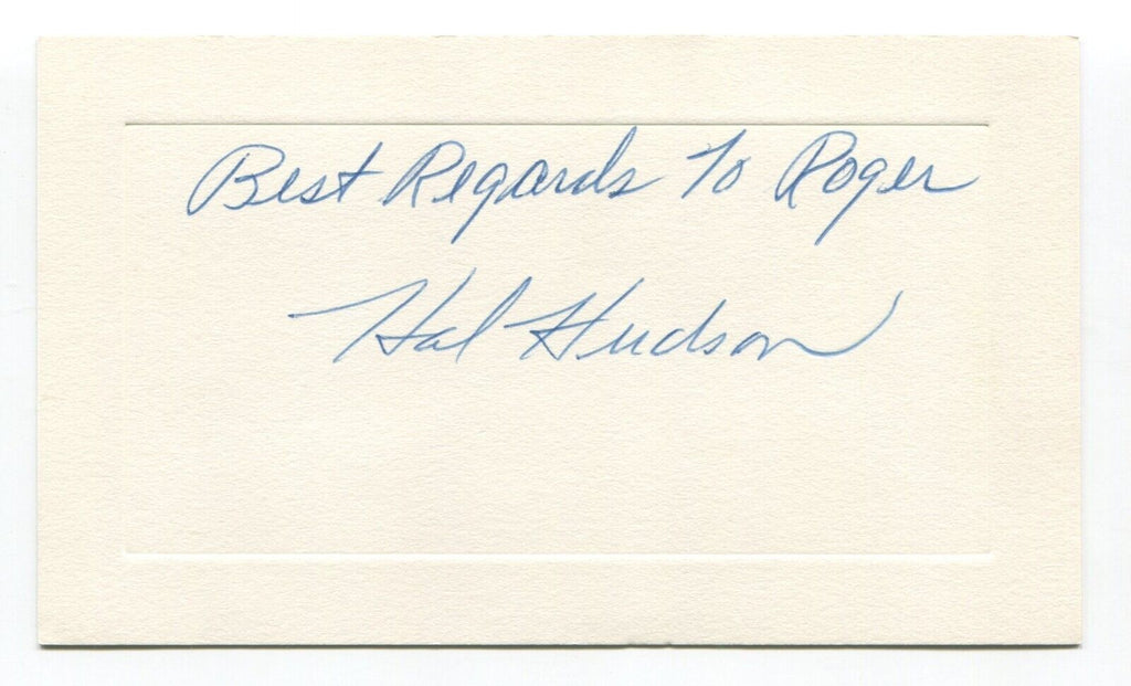 Up for sale is an autographed card approximately 3.5 x 5.5 inch card, boldly signed by baseball player Hal Hudson. Just a great looking autograph that will display nicely. Autograph was acquired by renowned autograph collector Roger Harris.