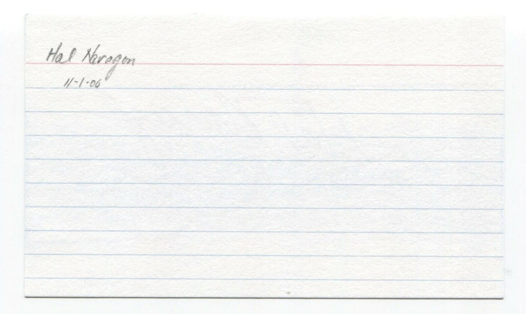 Hal Naragon Signed 3x5 Index Card Baseball Autographed Signature