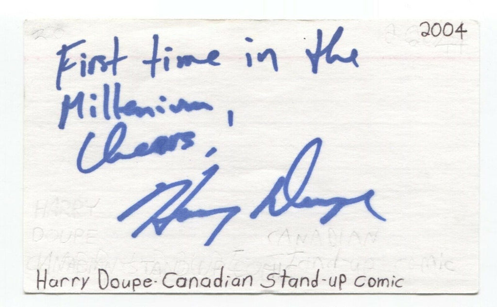 Up for sale is an autographed 3x5 index card, boldly signed by comedian Harry Doupe.  This autograph was part of an enormous collection of over 9000 in person collected signatures.