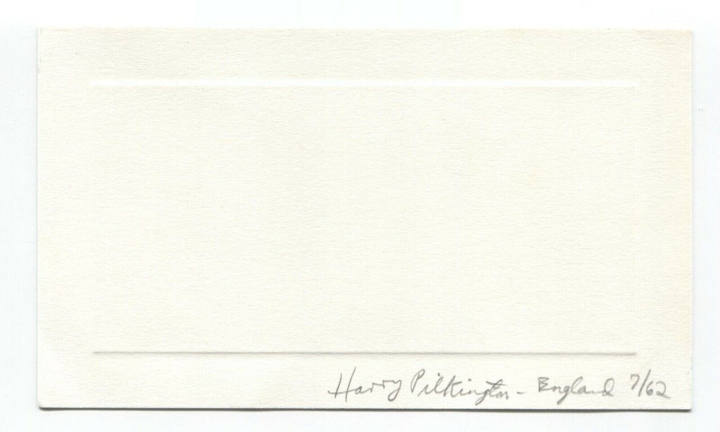 Up for sale is a signed 5.5 x 3.5 inch thick paper card, boldly autographed by businessman Harry Pilkington. Autograph was part of the well known single owner, original "Roger Harris" collection of thousands of autographs, acquired over many decades of collecting.