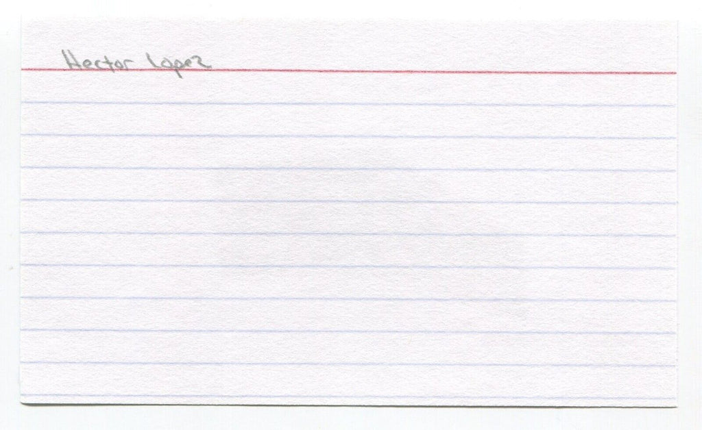 Up for sale is an autographed cut adhered to a 3x5 index card, signed by baseball player Hector Lopez. Just a great looking autograph that will display nicely. Autograph was part of the JP collection consisting of over 350 autographed index cards.