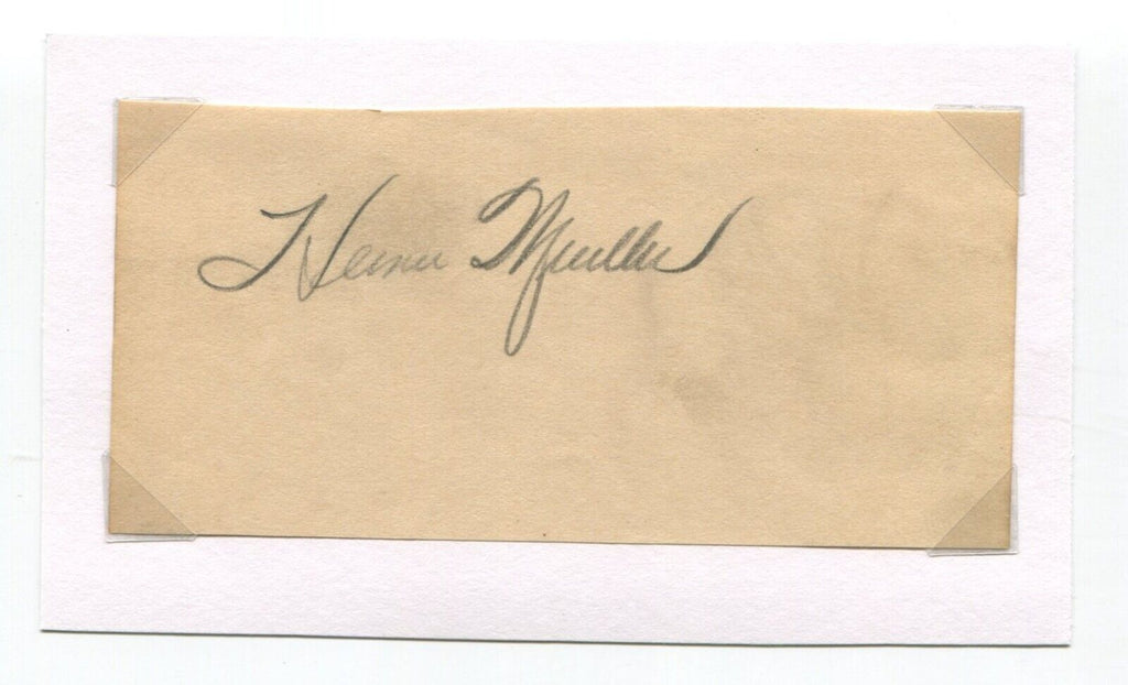 Up for sale is an autographed cut adhered to a 3x5 index card, signed by baseball player Heinie Mueller. Just a great looking autograph that will display nicely. Autograph was part of the JP collection consisting of over 350 autographed index cards.
