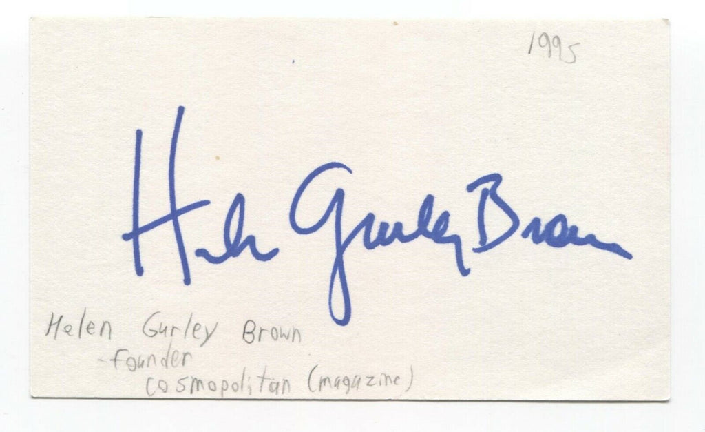 Helen Gurley Brown Signed 3x5 Index Card Autographed Signature Cosmopolitan