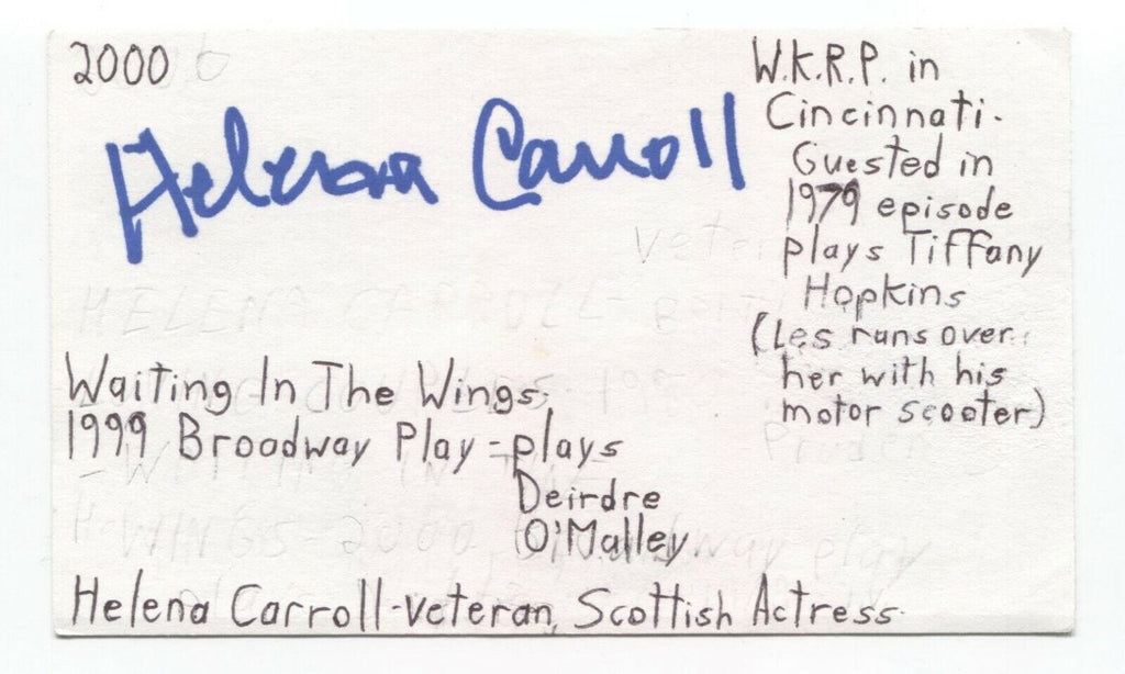 Up for sale is an autographed 3x5 index card, boldly signed by Helena Carroll. Autograph was part of an enormous collection of over 9000 in person collected signatures.