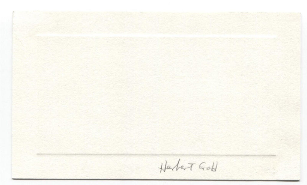 Up for sale is a signed card, boldly autographed by the author Herbert Gold. Autograph was part of the well known single owner, original "Roger Harris" collection of thousands of autographs, acquired over many decades of collecting.