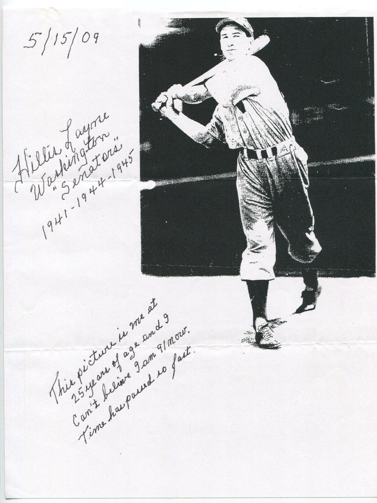 Hillis Layne Signed Paper Photo Autographed Baseball Washington Senators