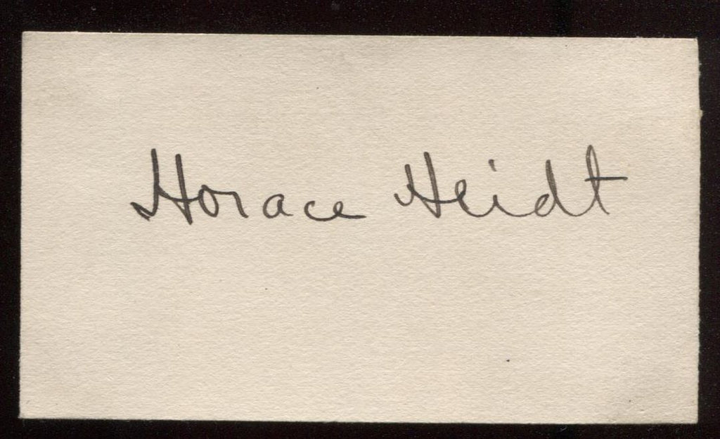 Buy it now or best offer on this signed card, autographed boldly in  steel tipped fountain pen by Horace Heidt.   Stored in a vintage autograph album.  Card measures approximately 3.25 x 2 inches in size, and is the perfect example to matte and frame with a vintage photograph.  Autograph was part of a vintage collection spanning 1931 - 1953, of which I purchased in it's entirety, and will be listing over the coming week.