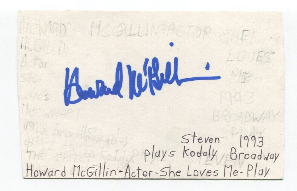 Up for sale is an autographed 3x5 index card, boldly signed by actor Howard McGillin. This autograph was part of an enormous collection of over 9000 in person collected signatures, all acquired in person by the great Glenn Marshall.
