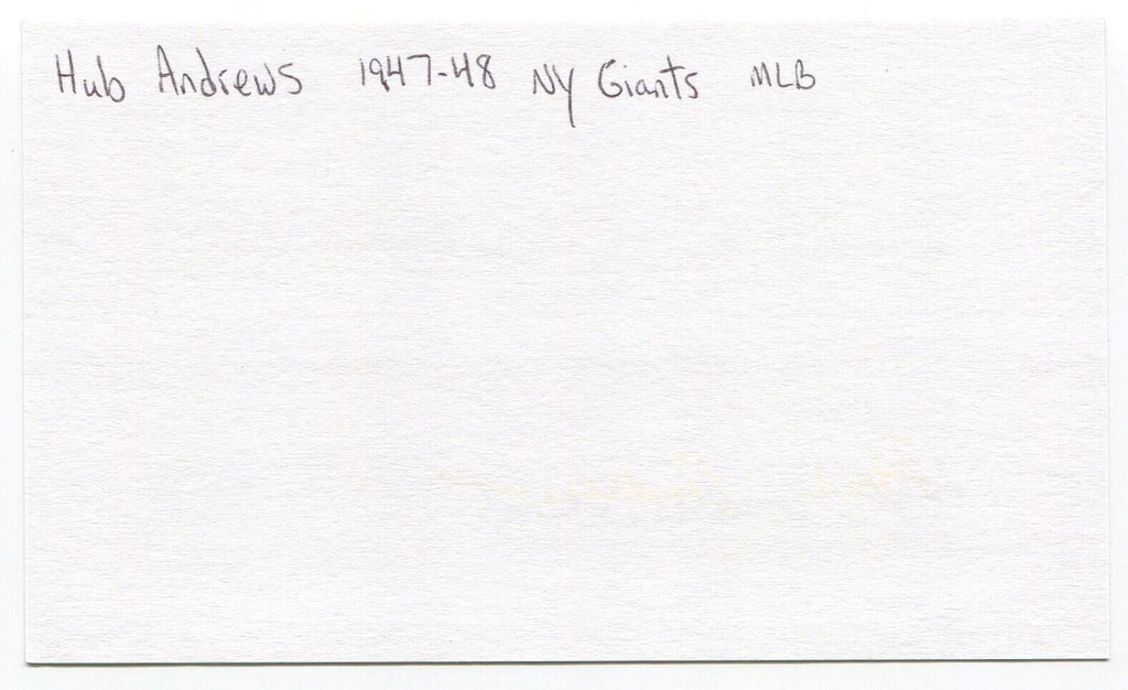 Hub Andrews Signed 3x5 Index Card Autographed New York Giants Debut 1947