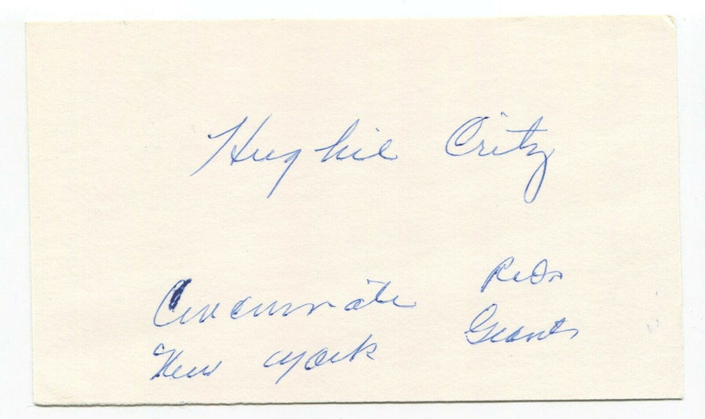 Hughie Critz Signed 3x5 Index Card Autographed Signature Baseball Giants