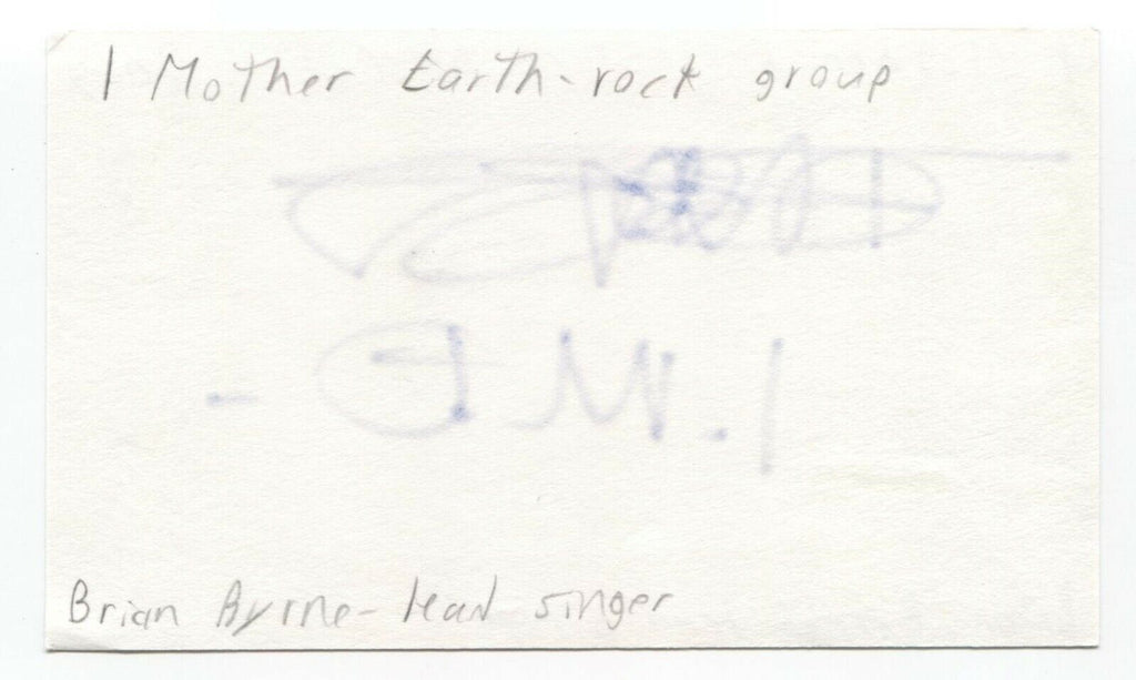 I Mother Earth - Brian Byrne Signed 3x5 Index Card Autographed Signature IME