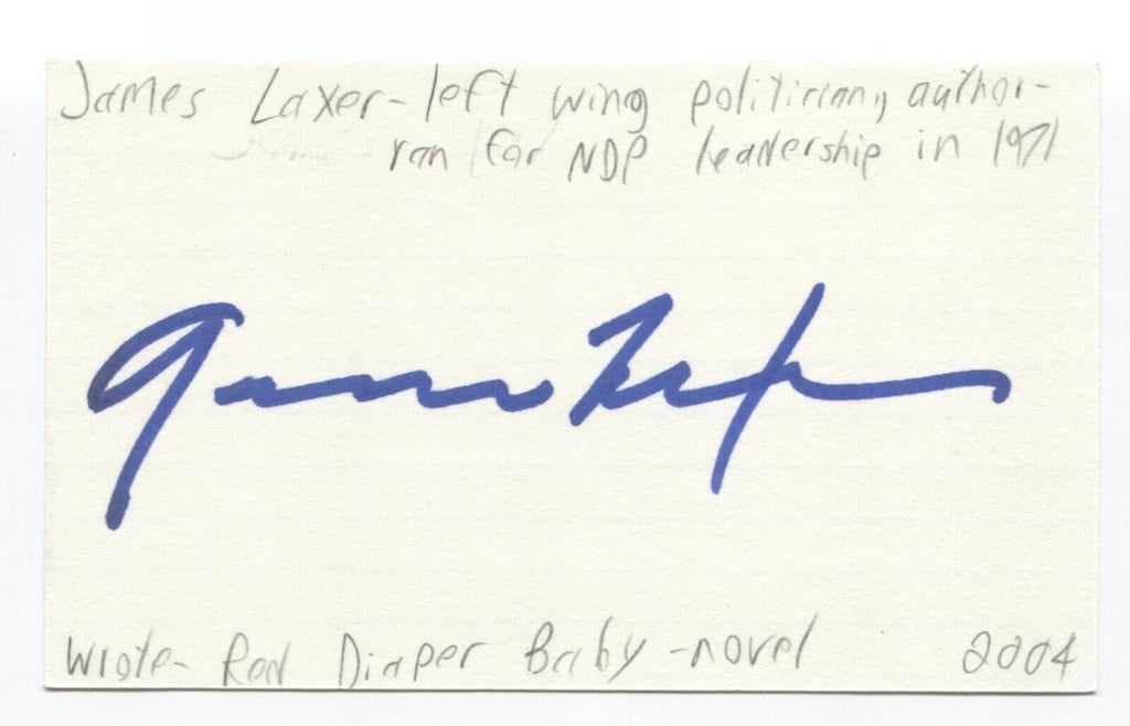 James Laxer Signed 3x5 Index Card Autographed Signature Politician Author