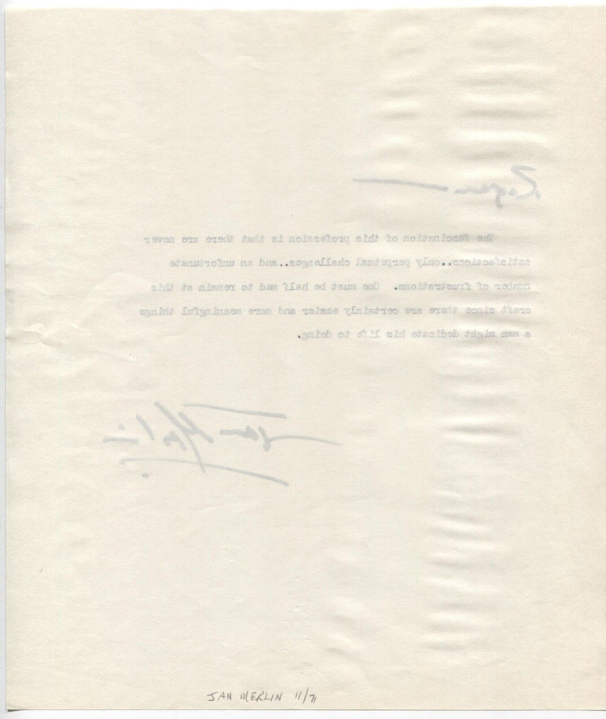 Jan Merlin Signed Letter Autographed Signature Gunsmoke Actor