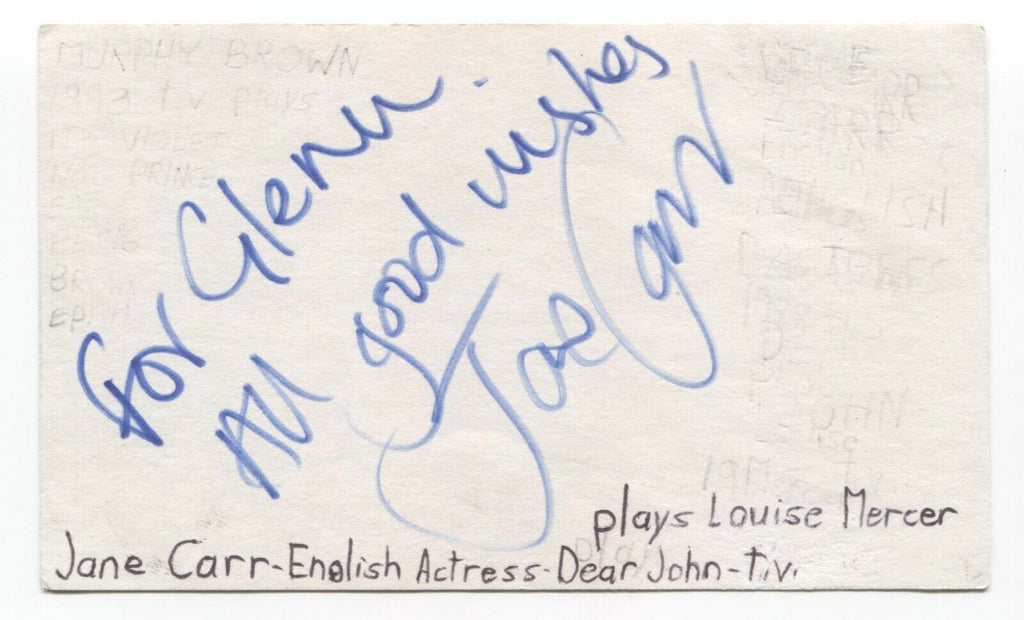 Jane Carr Signed 3x5 Index Card Autographed Signature Actress