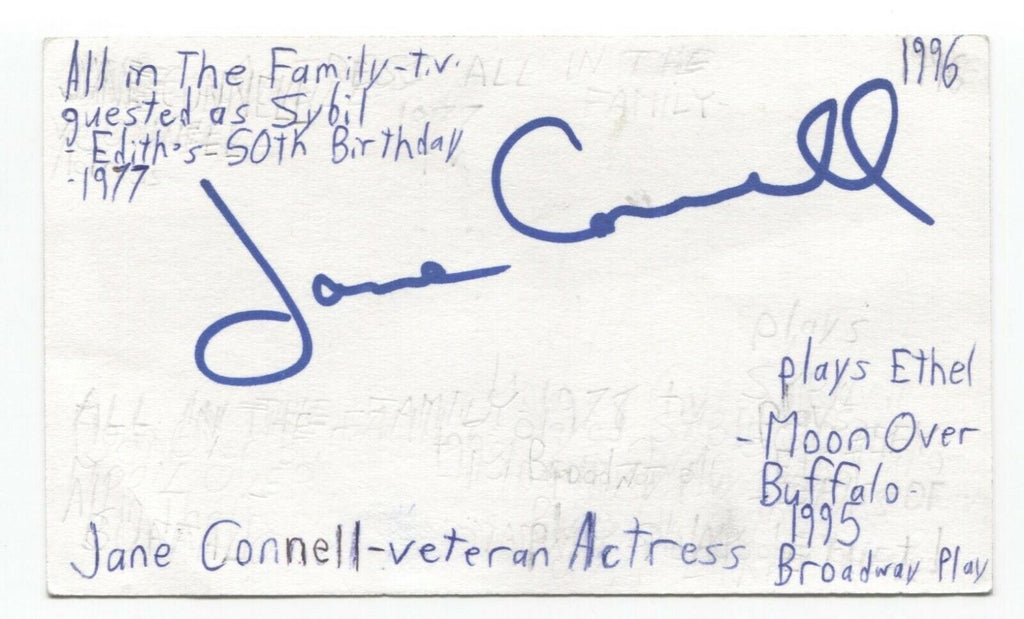 Jane Connell Signed 3x5 Index Card Autographed Signature Actor