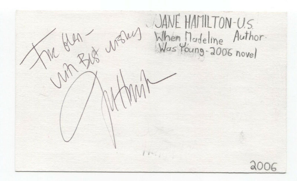 Jane Hamilton Signed 3x5 Index Card Autographed Signature Author Writer