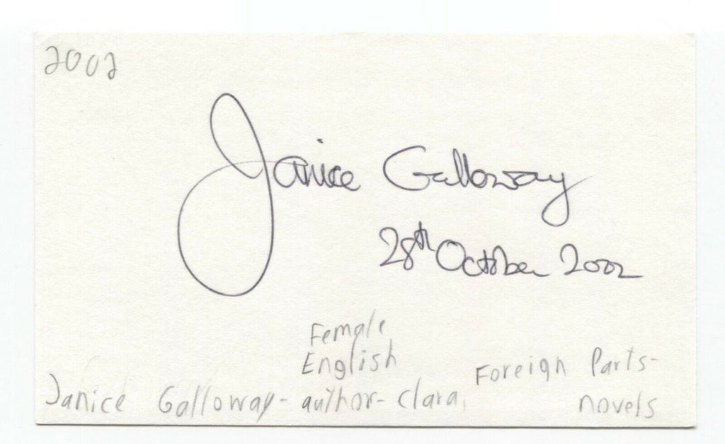 Janice Galloway Signed 3x5 Index Card Autographed Signature Author Writer