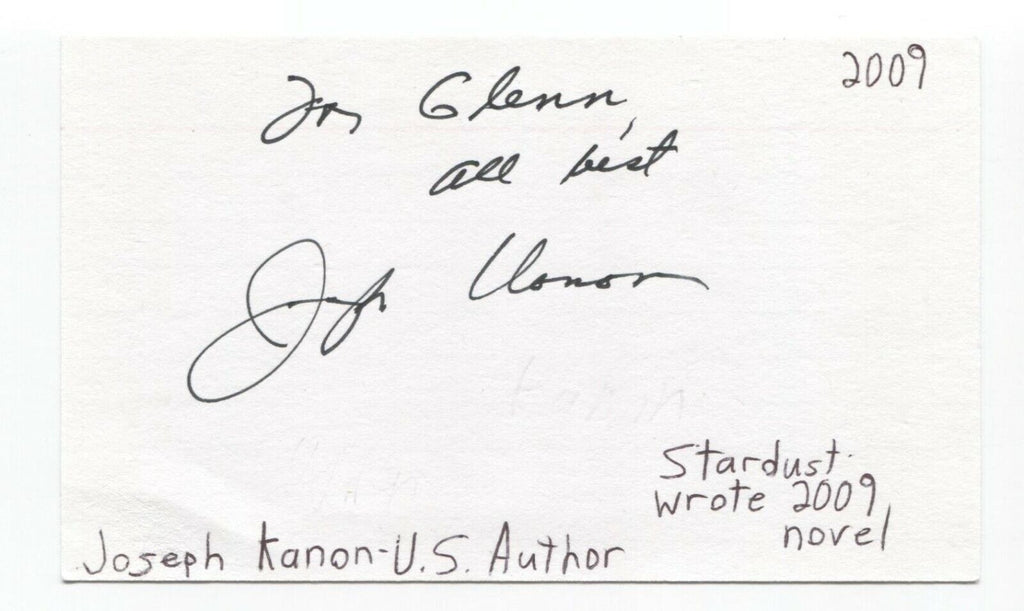 Up for sale is an autographed 3x5 index card, boldly signed by author Joseph Kanon. This autograph was part of an enormous collection of over 9000 in person collected signatures.