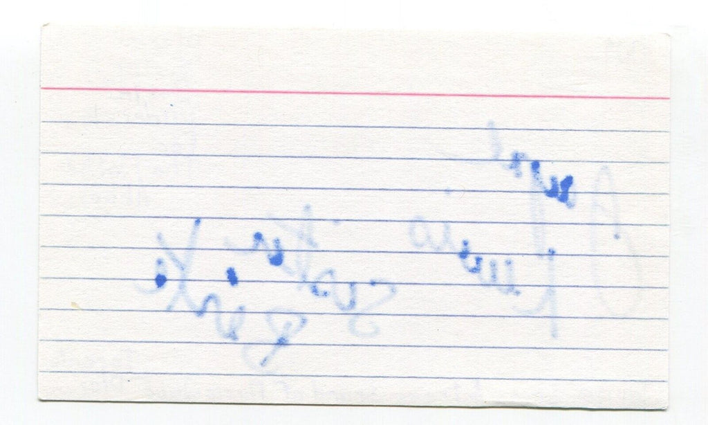 Up for sale is an autographed 3x5 index card, boldly signed by actress Jayne Lewis. This autograph was part of an enormous collection of over 9000 in person collected signatures, all acquired in person by the great Glenn Marshall.