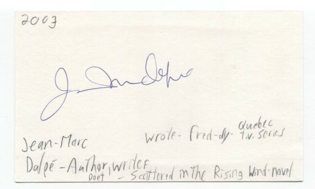 Jean-Marc Dalpe Signed 3x5 Index Card Autographed Signature Poet Playwright