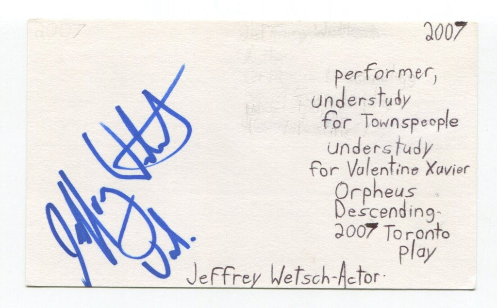 Jeffrey Wetsch Signed 3x5 Index Card Autographed Actor Murdoch Mysteries