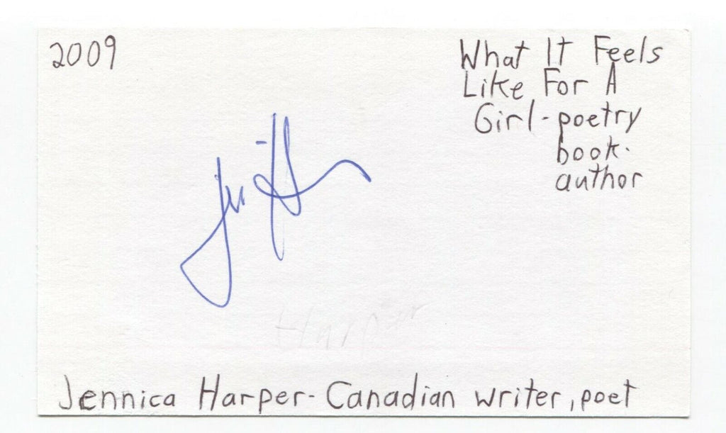 Jennica Harper Signed 3x5 Index Card Autographed Signature Author Poet Writer