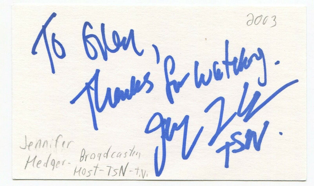 Jennifer Hedger Signed 3x5 Index Card Autographed Canadian Sports Reporter TSN