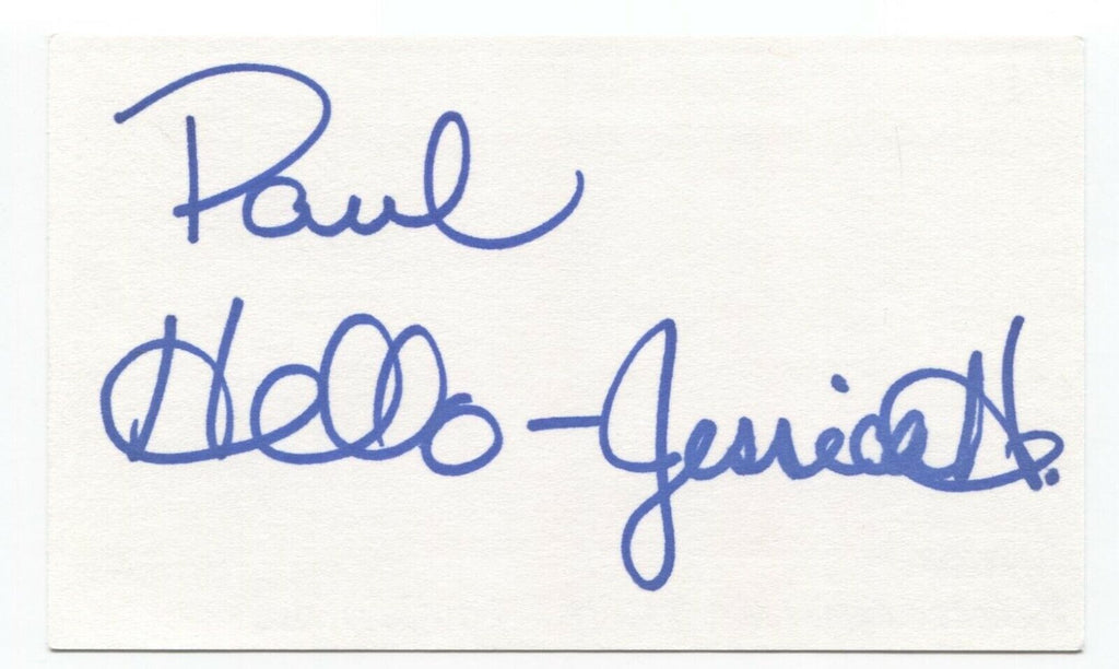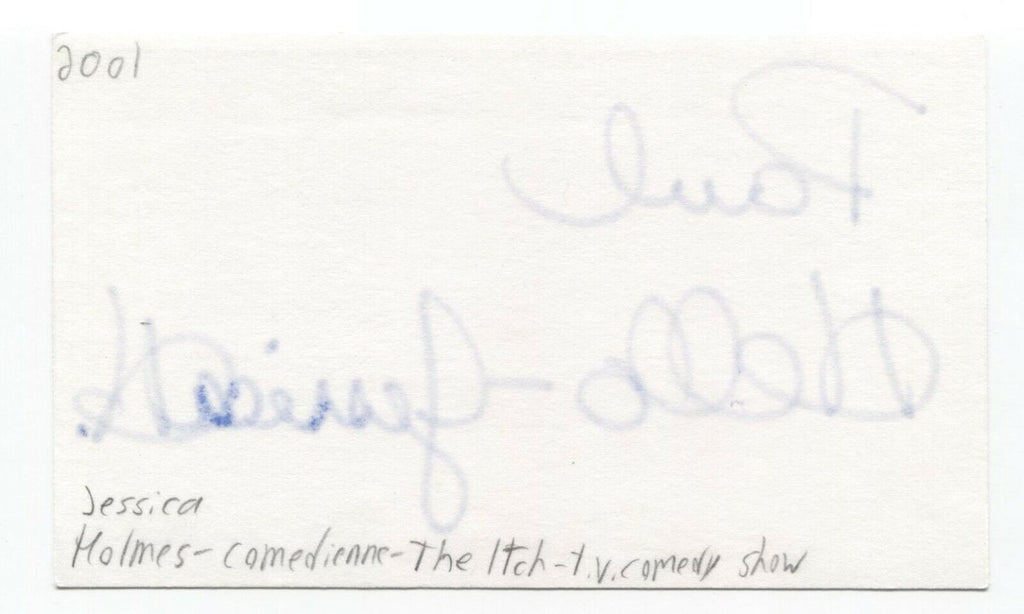 Up for sale is an autographed 3x5 index card, boldly signed by comedian Jessica Holmes. This autograph was part of an enormous collection of over 9000 in person collected signatures.