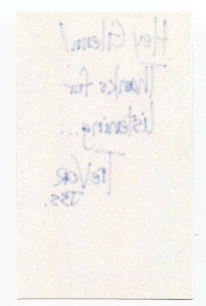 Up for sale is an autographed 3x5 index card, boldly signed by Trevor Tuminski, of the band Jet Set Satellite. This autograph was part of an enormous collection of over 9000 in person collected signatures.