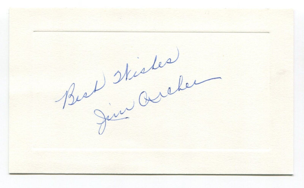 Up for sale is an autographed approximately 3.5 x 5.5 inch card, boldly signed by baseball player Jim Archer. Just a great looking autograph that will display nicely. Autograph was acquired by renowned autograph collector Roger Harris.