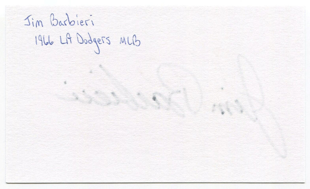 Jim Barbieri Signed 3x5 Index Card Autographed Signature Los Angeles Dodgers MLB
