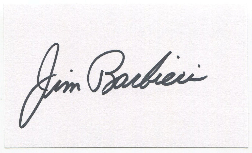 Up for sale is an autographed 3x5 index card, boldly signed by James Patrick "Jim" Barbieri. Just a great looking autograph that will display nicely.   Autograph was part of a huge "MP" Collection, consisting of over 3,000 signed index cards that I was fortunate to purchase in it's entirety.