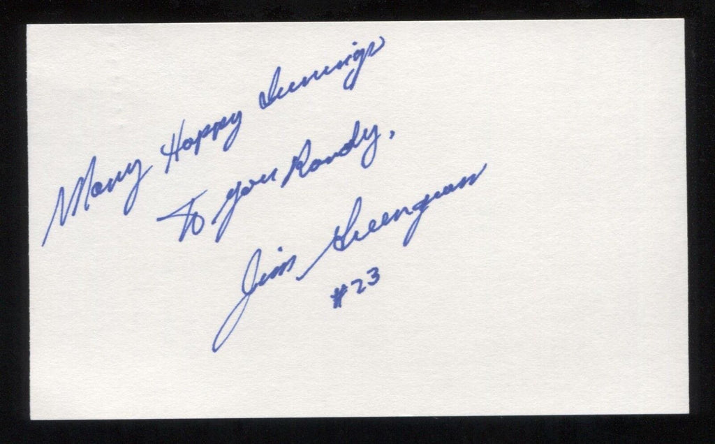 Jim Greengrass Signed 3 x 5 Inch Index Card Autographed Baseball Signature