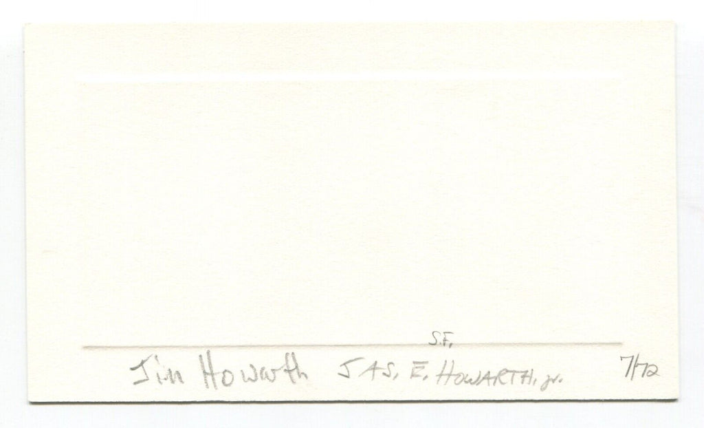 Up for sale is an autographed card approximately 3.5 x 5.5 inch card, boldly signed by baseball player Jim Howarth. Just a great looking autograph that will display nicely. Autograph was acquired by renowned autograph collector Roger Harris.